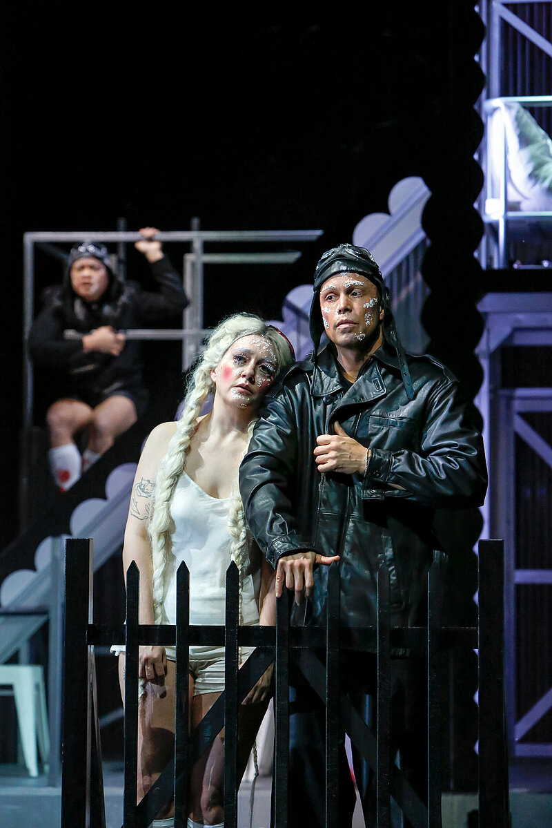 Die letzte Vorstellung von ‚Pidor‘ und der Wolf am 22. März 2026 ist Anlass für ein begleitendes Rahmenprogramm am Nachmittag in der Schauburg Dortmund. Ab 15 Uhr wird der Film God’s Own Country gezeigt, zuvor gibt es eine literaturwissenschaftliche Einführung zum Film von Francis Lee und zum Stück von Sam Max durch die Dramaturgin Sabrina Toyen. Film und Stück verbinden sich durch poetische Sprache, Figurenerzählung und Landschaftsbild und eröffnen damit Räume für marginalisierte Perspektiven und queeres Begehren. Die Ape(lina), eine kleine mobile Einheit aus Spiel- und Bildungsstätten, begleitet das Publikum vom Film zur Theateraufführung und schafft so einen performativen Übergang zwischen Raum, Film und Bühne.
