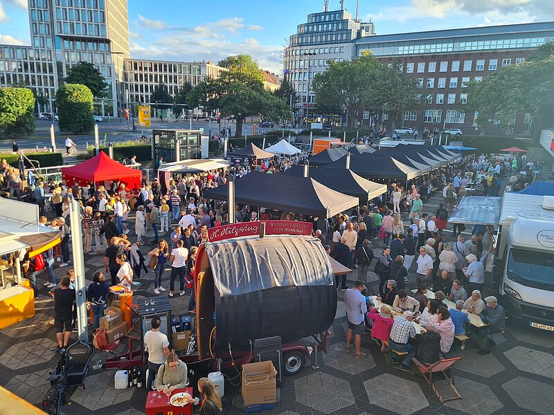 Neben der Bühne lädt ein vielfältiges Angebot aus Streetfood, regionalen Spezialitäten und Getränken zum Verweilen ein. Feste und wechselnde Anbieter machen jeden Termin einzigartig und bieten die Möglichkeit, neue kulinarische Entdeckungen zu machen oder bewährte Favoriten zu genießen.