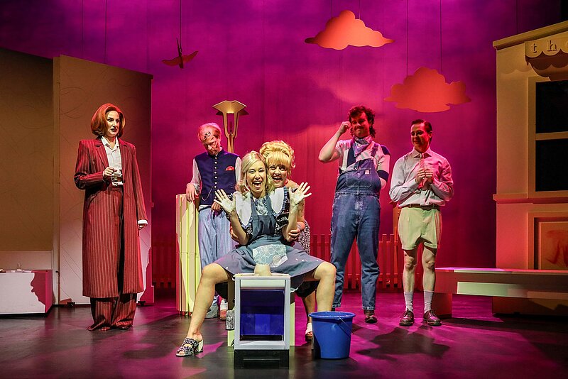 Auf der Bühne stehen Puah Abdellaoui als Evangelista „Eve“ Rull, Antje Prust als Marthe Rull, Lukas Beeler als Schreiber Licht und in der Doppelrolle Brigitte aka Briggy, Nika Mišković als Wendy Walter, Roberto Romeo als Ruprecht Tümpel sowie Linus Ebner (Gast) als Dorfrichter Mr. A.