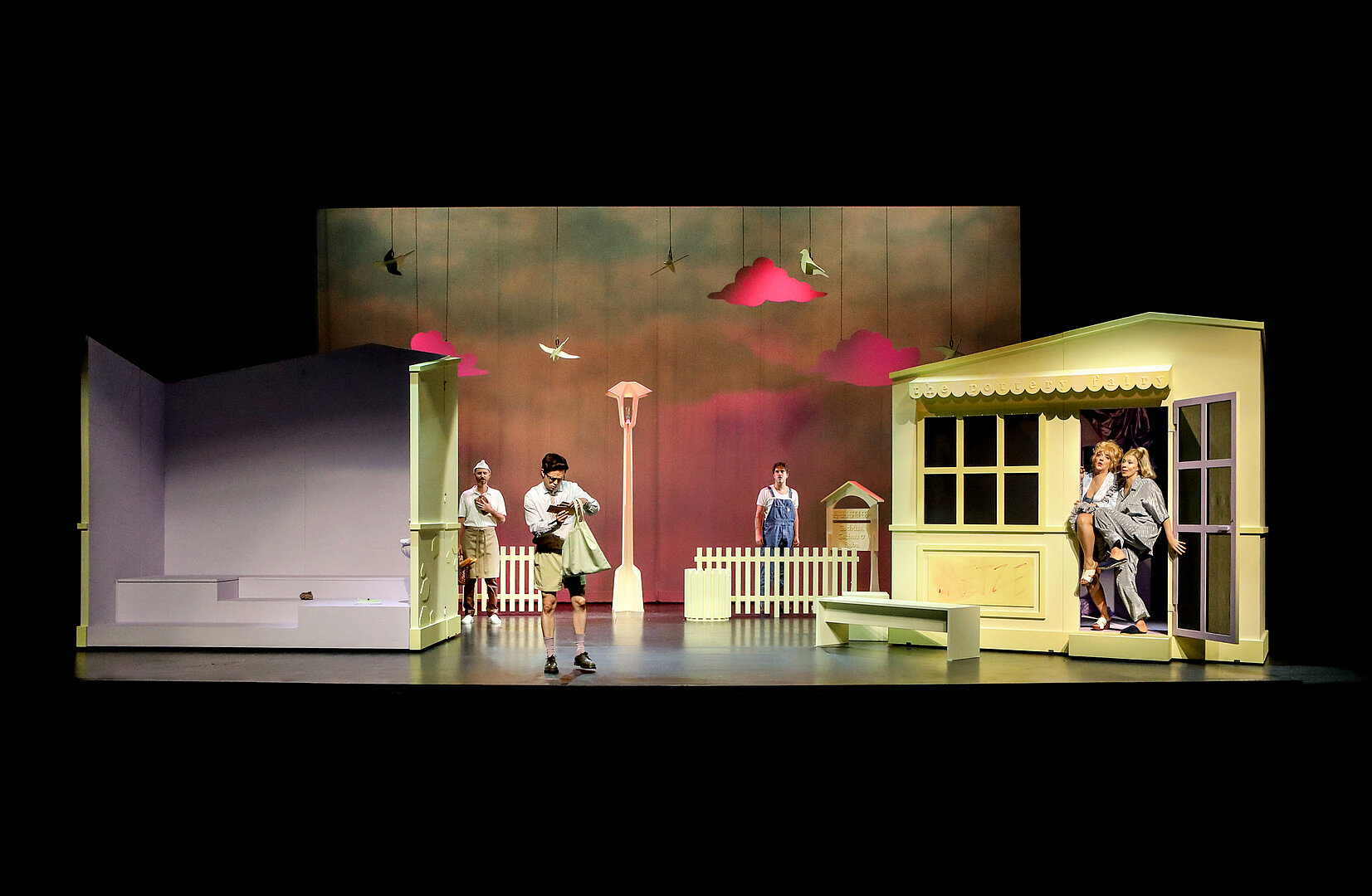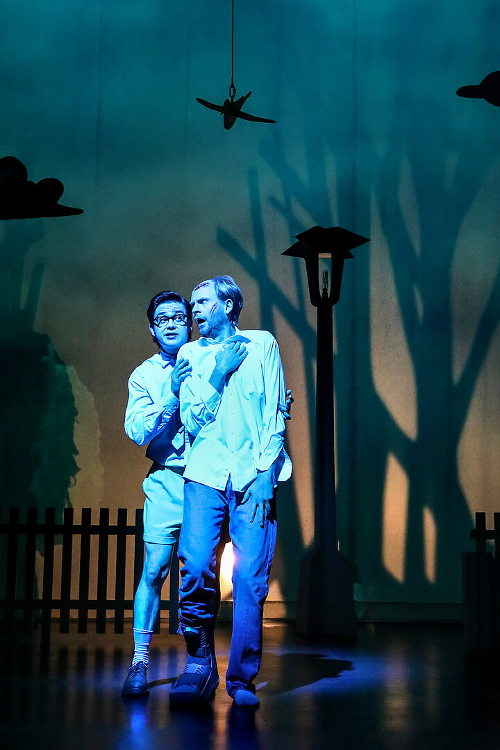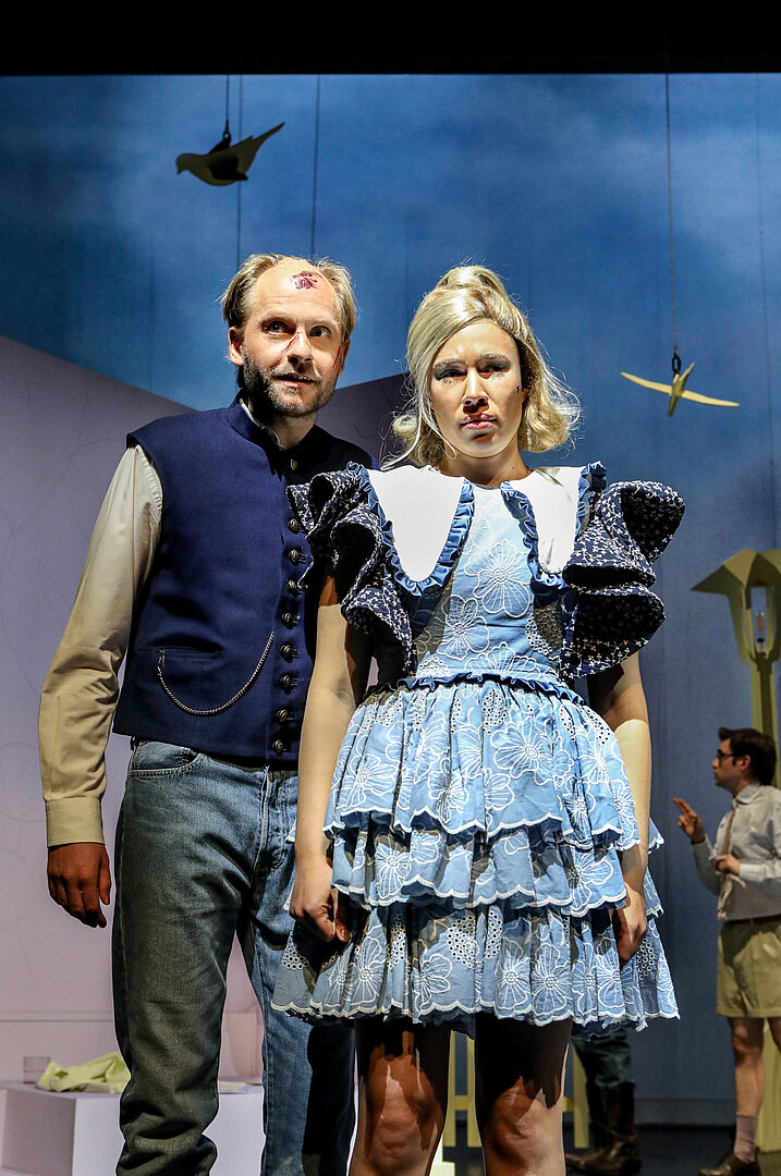 „Auch Ausstatterin Anita Ackva hat die Ironie-Brille aufgesetzt. Gelbe Hütten und eine Laterne erinnern an ein schnuckeliges Weihanchtsdorf, die Kostüme sind grotesk überzeichnet. Gerichtspräsidentin Wendy Walter (Nika Mišković) gibt sich in ihrem Hosenanzug so streng wie FBI-Agentin Scully in der Kultserie ‚Akte X‘, Mutter Marthe – Antje Prust im Ingrid-Steeger-Modus – lässt die Capri-Hose runter.
