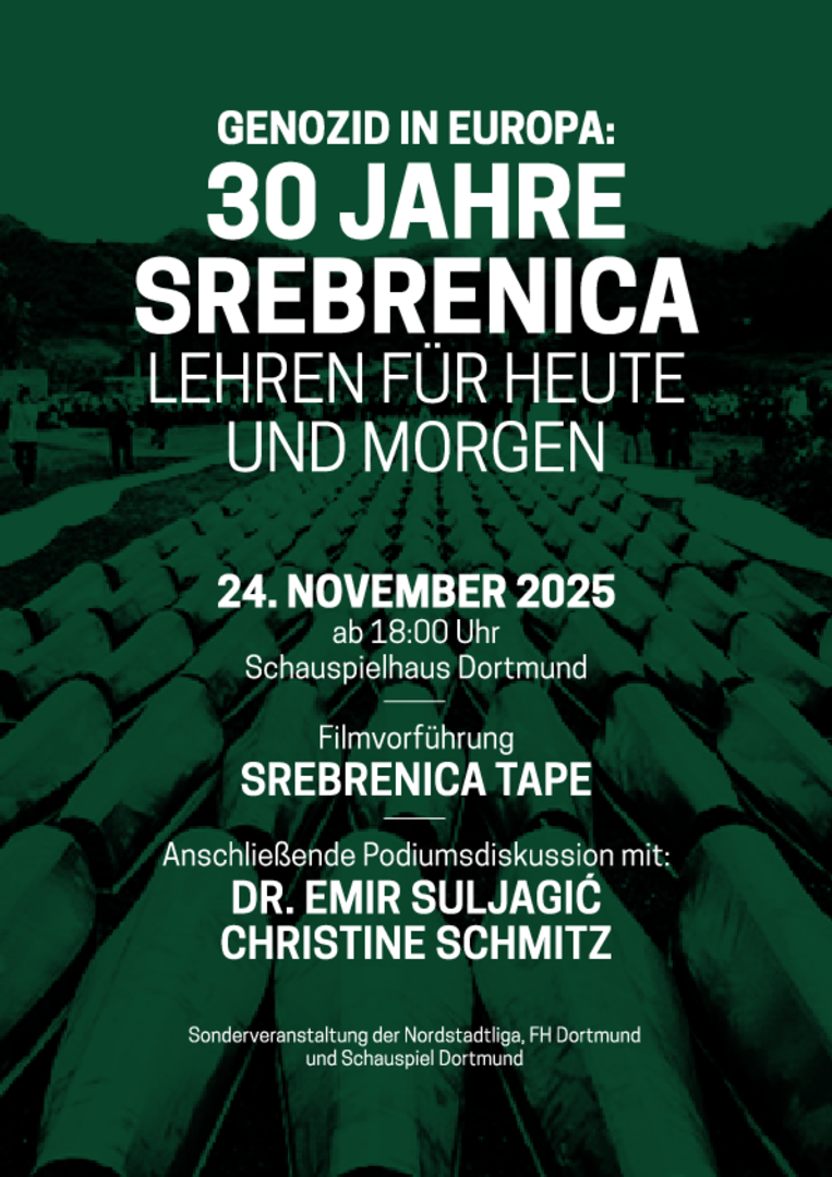 Die Nordstadtliga Dortmund und die Fachhochschule Dortmund laden herzlich ein zur Filmvorführung von Srebrenica Tape von Chiara Sambuchi.