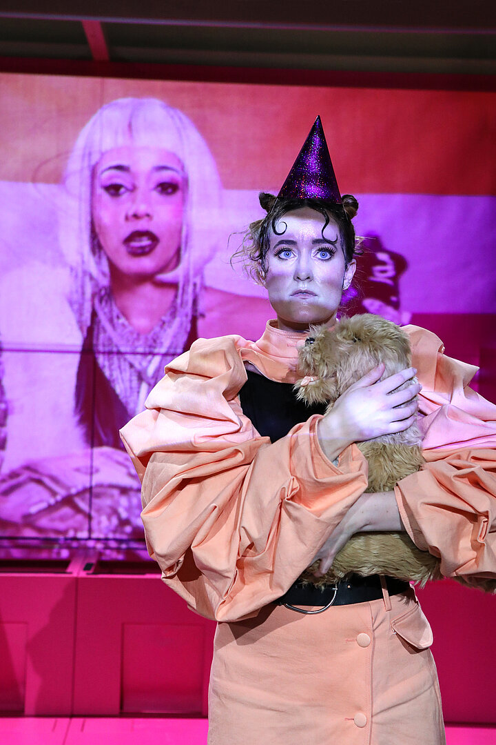 Was zunächst nach schriller Pop-Performance klingt, entpuppt sich schnell als kluge, sehr humorvolle Auseinandersetzung mit toxischer Weiblichkeit innerhalb queerer Strukturen, Erwartungshaltungen, Gruppendynamiken und dem Druck, ständig ‚frei‘, ‚richtig‘ und ‚progressiv‘ zu sein.