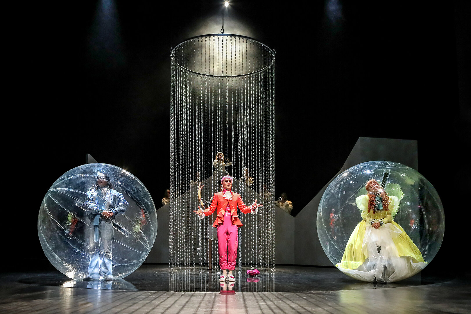 „Es gibt ja schon heitere Momente in Jana Vettens Inszenierung von ‚Leonce und Lena‘ am Schauspiel in Dortmund. Etwa wenn die Titelfiguren aus Georg Büchners Lustspiel in zwei großen transparenten Bällen stecken und versuchen, zueinander zu kommen, vergebens, weil die Plastikhäute sie eben trennen. Da recken und strecken sich Viet Anh Alexander Tran und Fabienne-Deniz Hammer in ihren großen Blasen. Ihr Begehren führt sie zu einer absurd komischen Körperakrobatik.