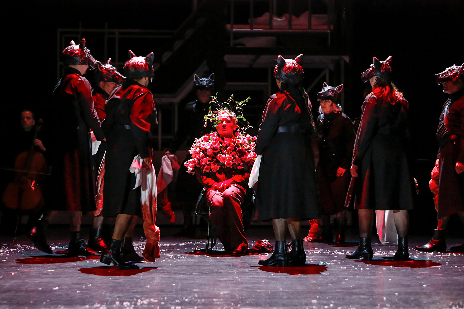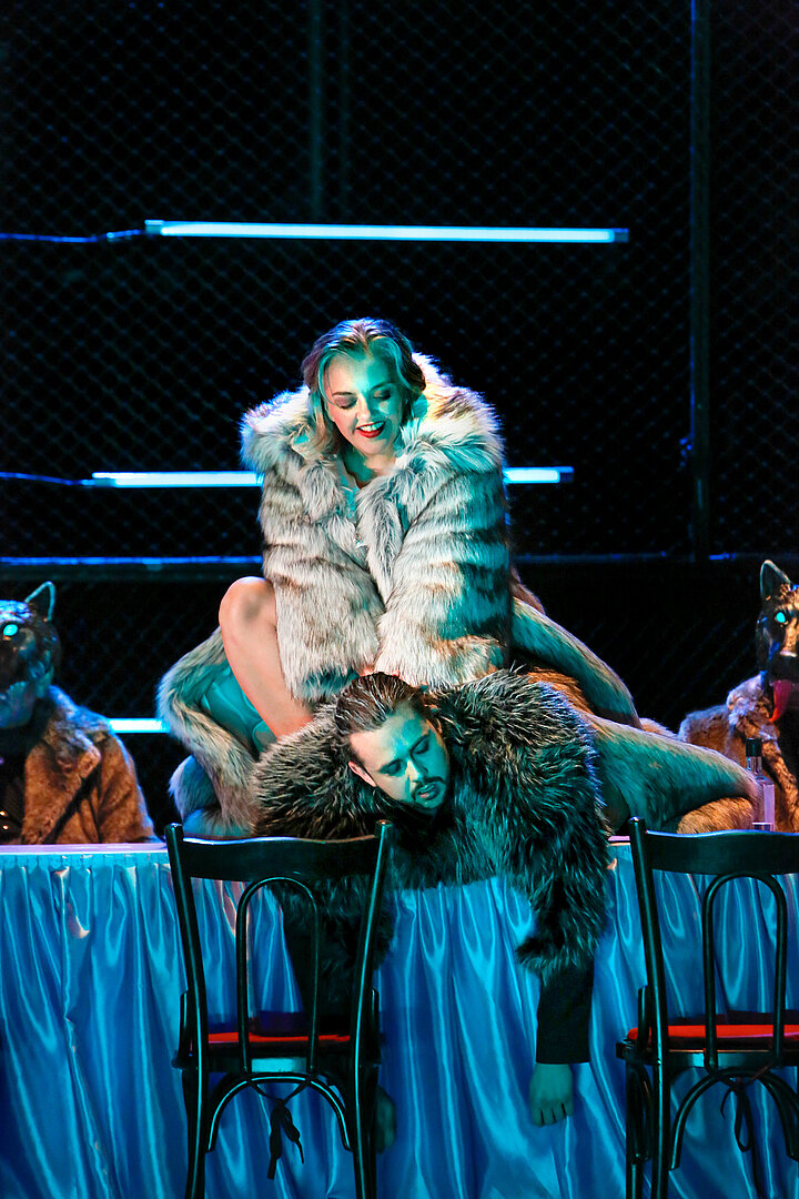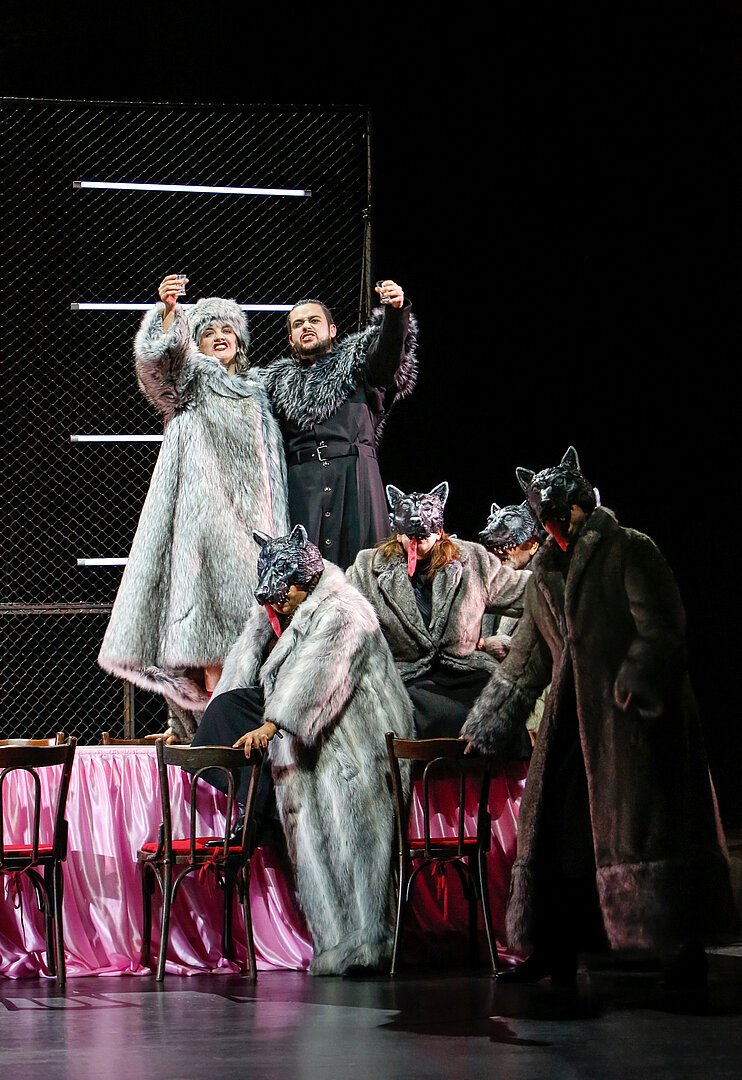 ‚Pidor‘ und der Wolf spinnt eisige Fäden zwischen der Geschichte von Peter und dem Wolf, Peters Frau und ihrem Sohn, Peters heimlicher Jugendliebe Ilya und einem brutalen System der Verfolgung und Ermordung homosexueller Männer in der russischen Republik Tschetschenien. Prokofjews Musikmärchen hat eine russische Landschaft zum Schauplatz, Sam Max überblendet die Märchenmotive mit albtraumhaften Szenen, die zwischen Tragödie und Dystopie-Panorama zirkulieren. Peters Sohn erzählt die Geschichte seiner Familie: Am Vorabend seines achten Geburtstags wird die Familie von Peter verlassen. Dieser fährt zu einem Mann – dem Wolf – um mit ihm zu schlafen. Der Wolf entführt im Auftrag der Regierung homosexuelle Männer, um sie zu foltern und zu ermorden. In Haft trifft Peter auf seine heimliche Jugendliebe Ilya. Acht Jahre später und auf dem Höhepunkt der Katastrophe begegnet Peters Sohn seinem Vater erneut.