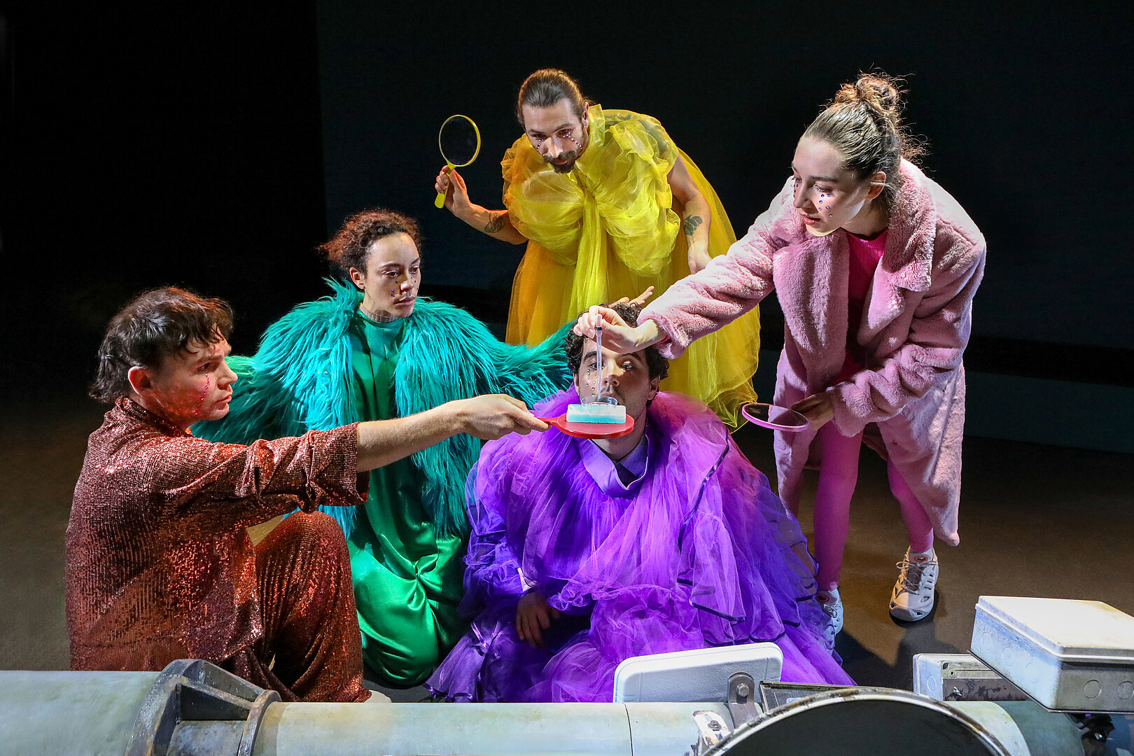 Weys Inszenierung sucht nicht nur nach Bildern für die sprichwörtlichen Jelinek-Textflächen. Sie verwendet sie vielmehr als eine Art Sprungbrett für seine Fantasie und die des Ensembles. Zusammen mit den beiden Tauben Künstlern Rafael-Evitan Grombelka und Eyk Kauly sowie den drei Dortmunder Ensemblemitgliedern Linda Elsner, Marlene Goksch und Roberto Romeo schafft Zino Wey so poetische wie kluge Theatermomente, die einen immer wieder von neuem überraschen.