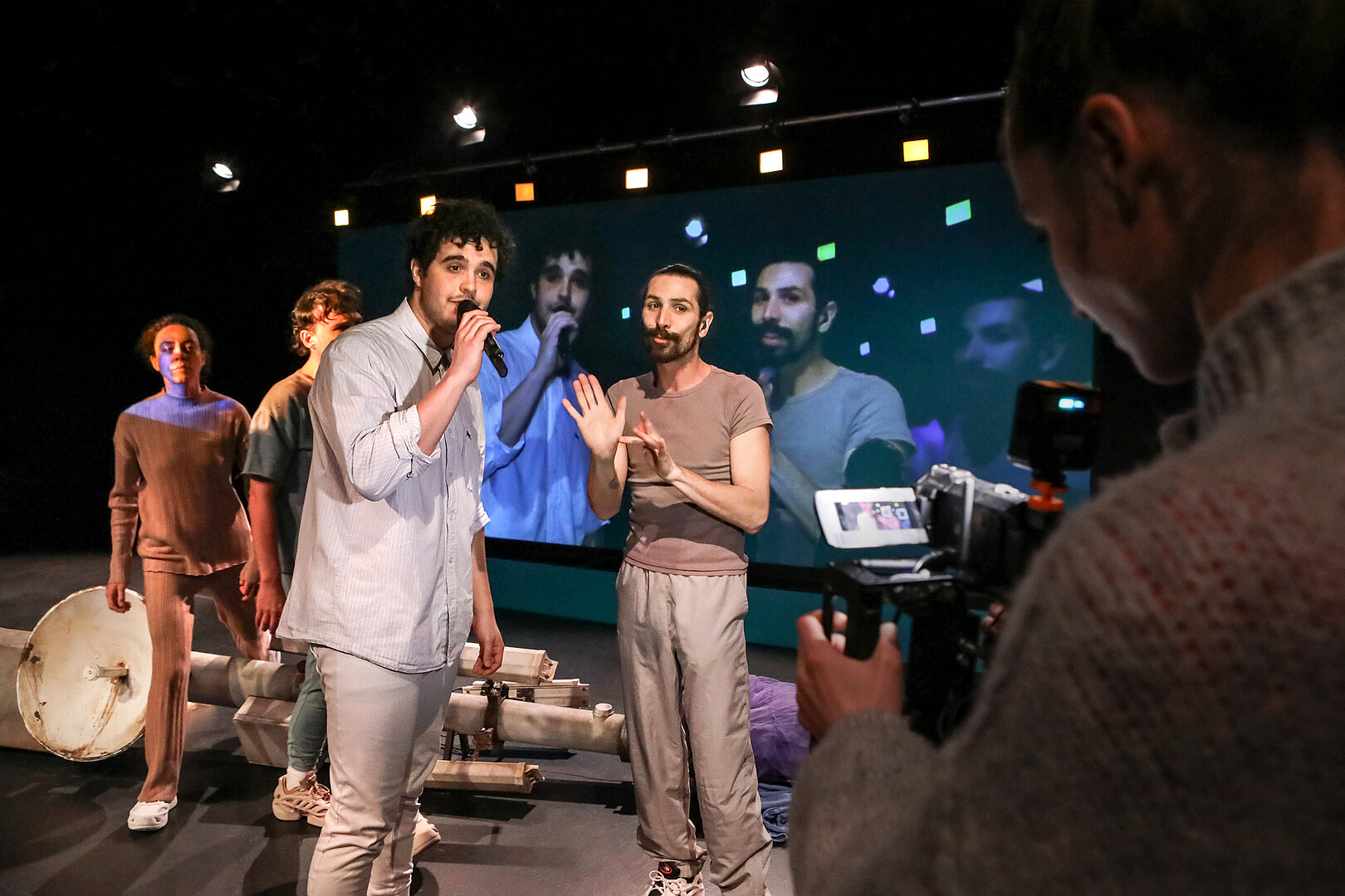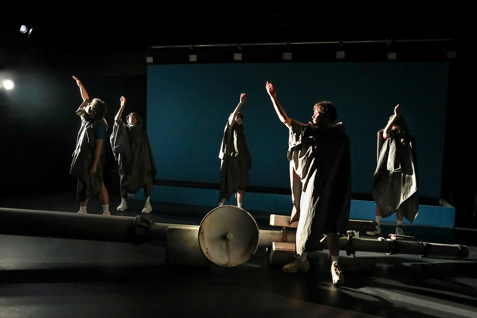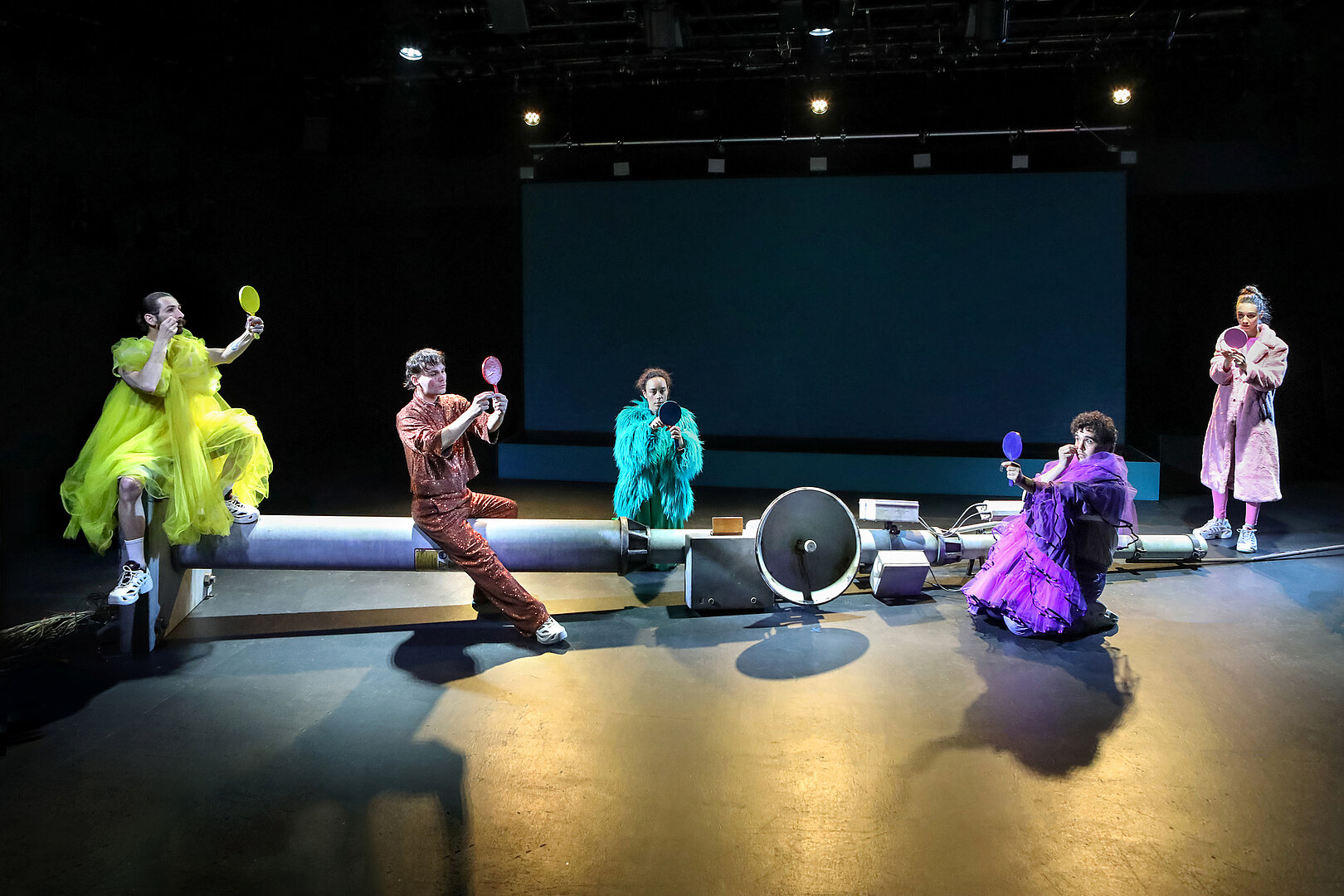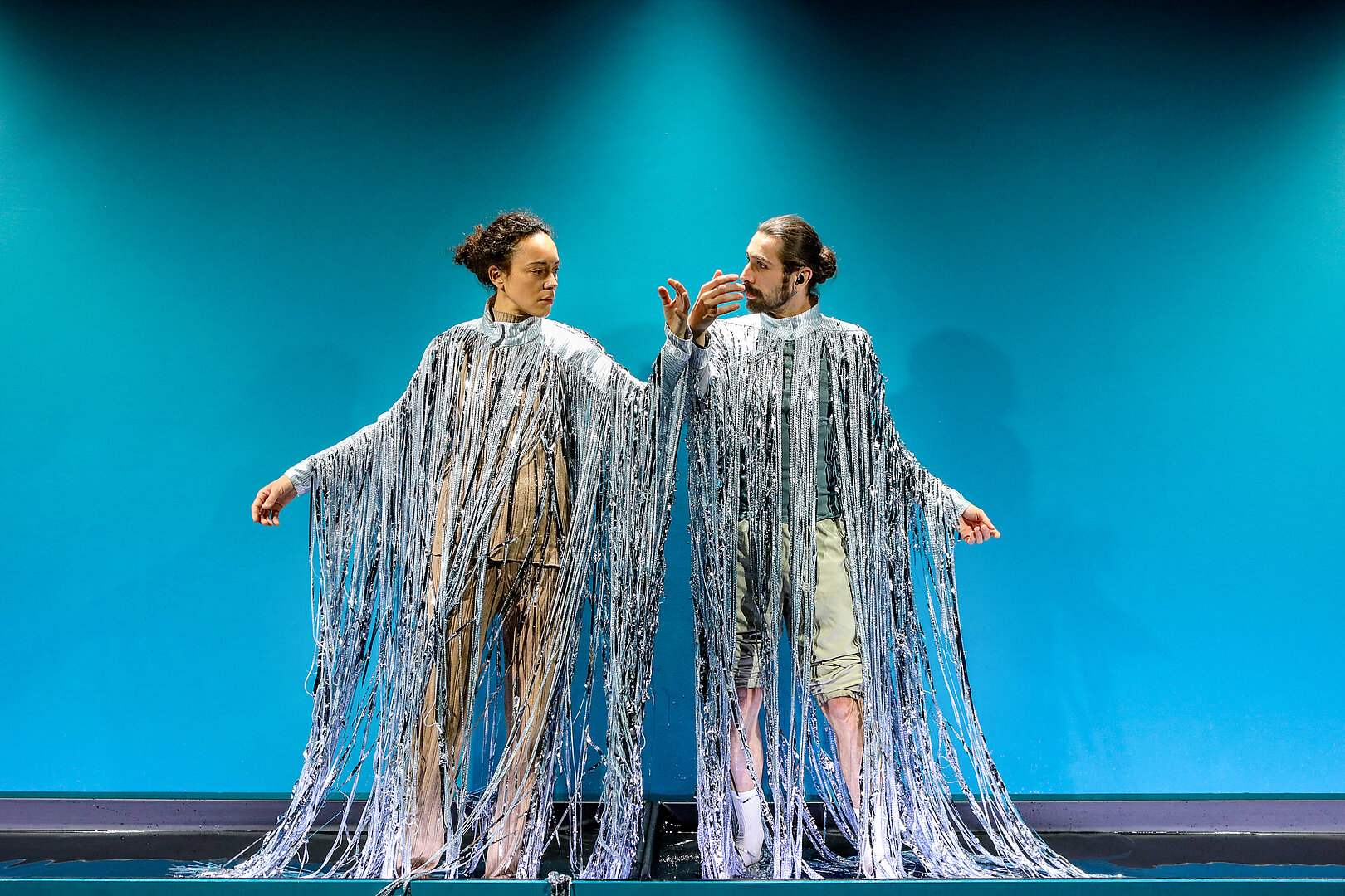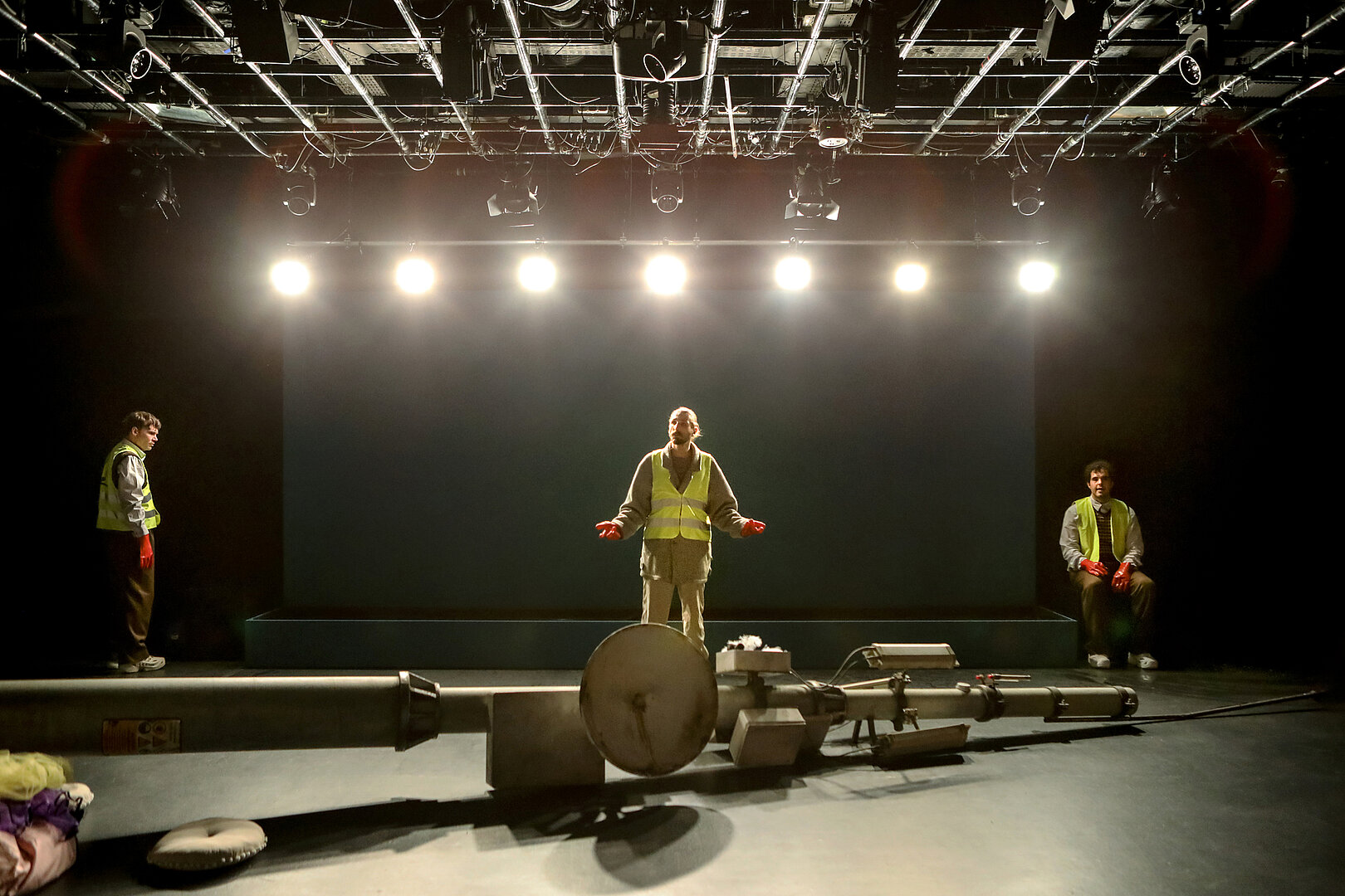 Aber Wey und sein Ensemble überwinden das so allgegenwärtige Gefühl von Einsamkeit, das sich in dem von Wey selbst entworfenen Bühnenbild in einem umgestürzten 5G-Mast manifestiert, der nichts mehr sendet, nicht nur in poetischen Momenten und Szenen. Ihr inklusiver Ansatz, bei dem sich Taube Künstlerinnen und die Mitglieder eines Stadttheater-Ensembles auf Augenhöhe begegnen, setzt ein grundlegendes Zeichen für gemeinschaftliches Leben und Arbeiten. Laut- und Gebärdensprache stehen in ‚Winterreise‘ gleichberechtigt nebeneinander. Nichts wird einfach übersetzt. Die beiden Sprachen behalten ihre Eigenständigkeit und lenken die Wahrnehmung des Publikums auf ihre jeweils eigene Poesie.