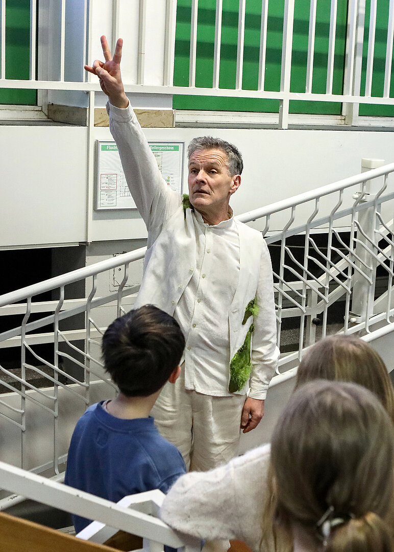 Hinweis: Das Stück spielt in verschiedenen Räumen im Kinder- und Jugendtheater. Während der Vorstellung gibt es mehrere Ortswechsel, die auch die Treppe, bzw. den Treppenlift ins Untergeschoss umfassen.